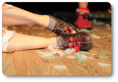 Deux personnages burlesques dévoilent avec authenticité et décalage leurs blessures intérieures, leur part d’ombre et de folie. Une relation se tisse entre elles, relation en miroir, relation de couple ? Entre complicité et conflit, fusion et séparation, elles questionnent nos relations intimes amicales et/ou amoureuses. Mêlant humour, gravité et poésie, elles partagent avec le public leurs émotions et tentent de sublimer leurs fragilités pour qu’elles deviennent une force. Elles se mettent en jeu/je utilisant le corps et la voix dans une tentative de réparation, avec fougue et audace, au travers de multiples facettes.